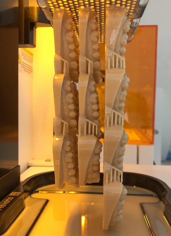 Konkret helfen uns unsere 3D-Drucker bei der Fertigung von zahntechnischen Lösungen mit